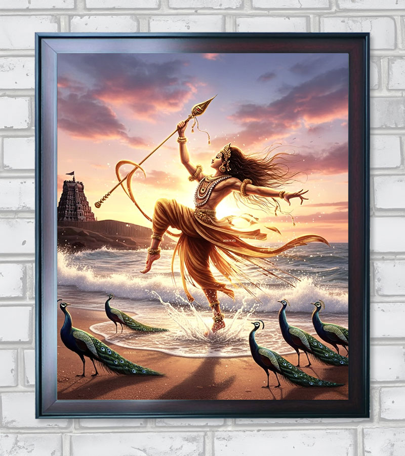 Brave and Majestic Young Murugan. The Concept Art is elegantly framed with a premium matte finish. Available in A3 size, along with an original UHD soft copy in 300 DPI for high-quality digital use.