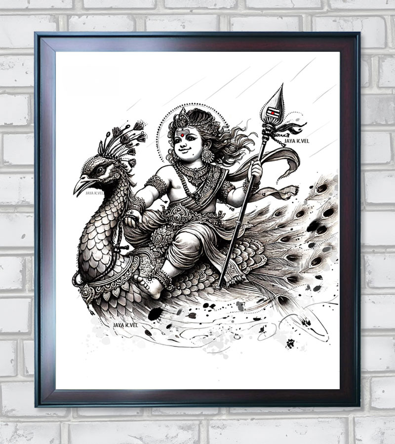 Muruga Watches Over You – Always With You – Concept Art is framed with a matte finish and is available in A3, A4, and UHD Original Art Soft Copy in 300 DPI.